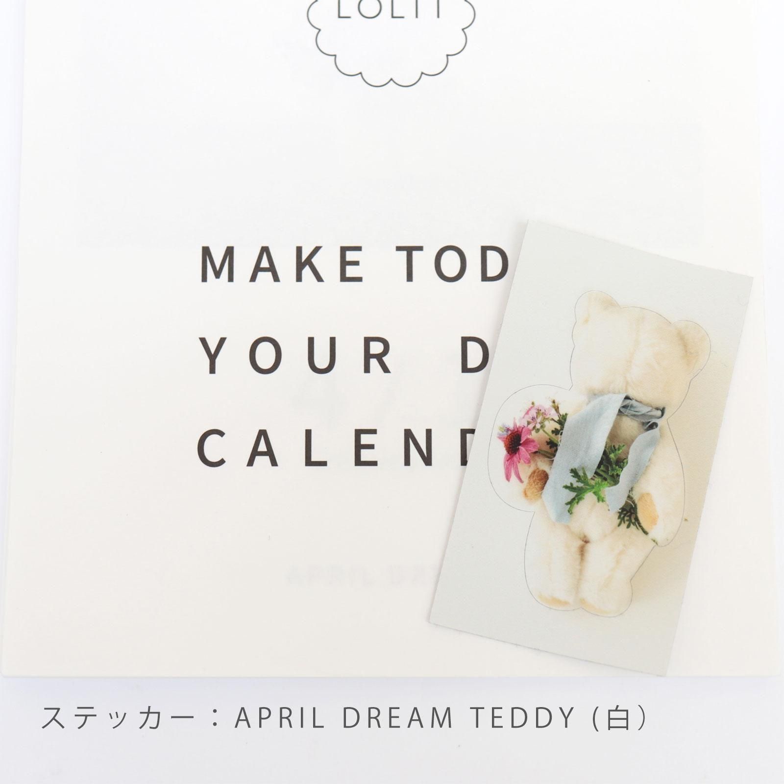 APRIL DREAM TEDDY(ステッカー/白):5.5 × 3.5cm
