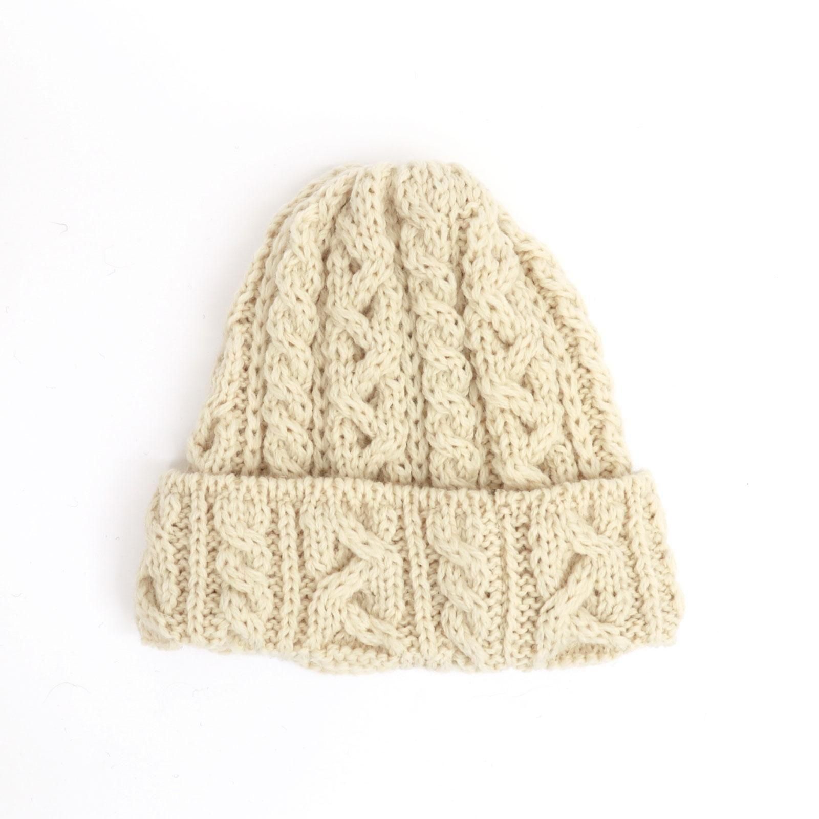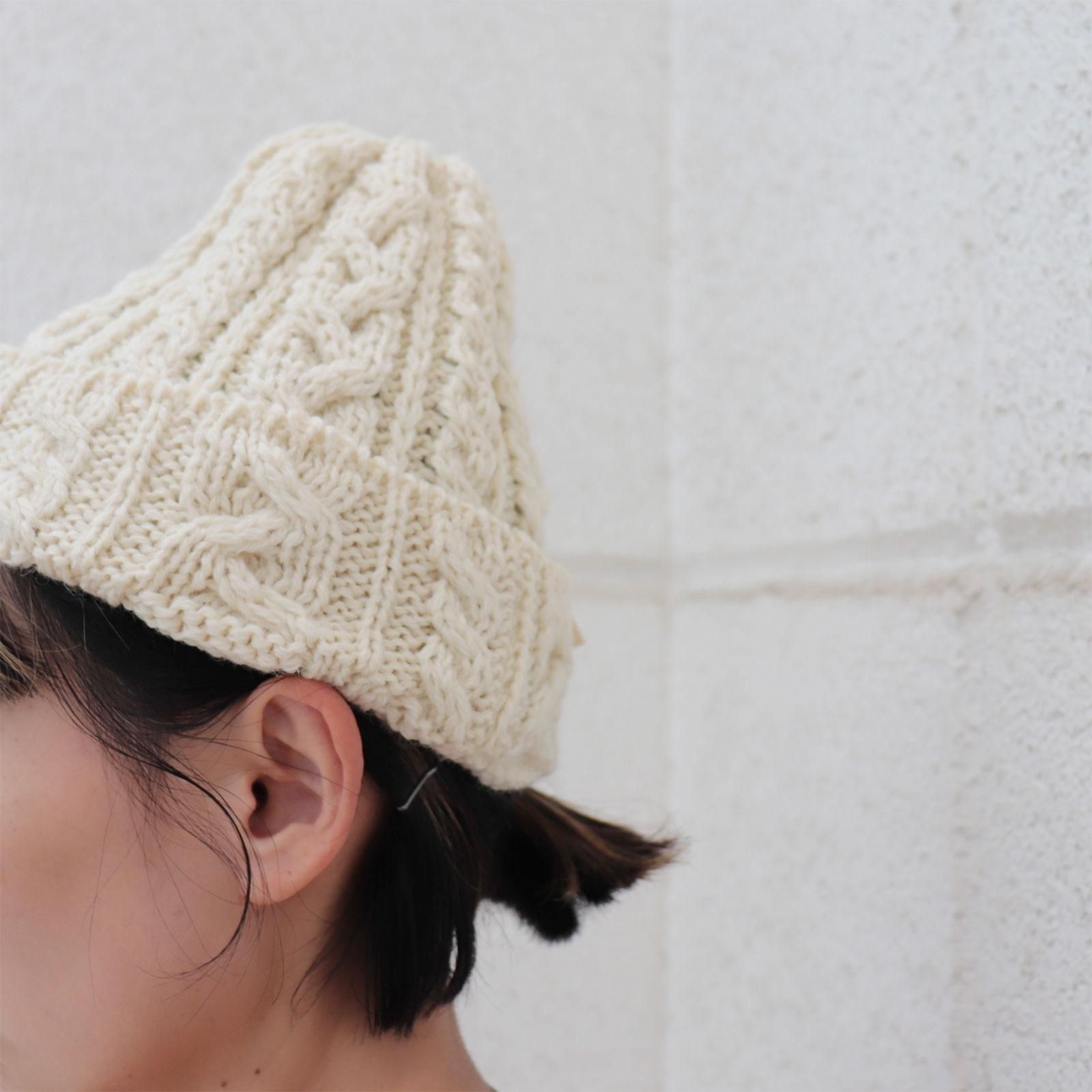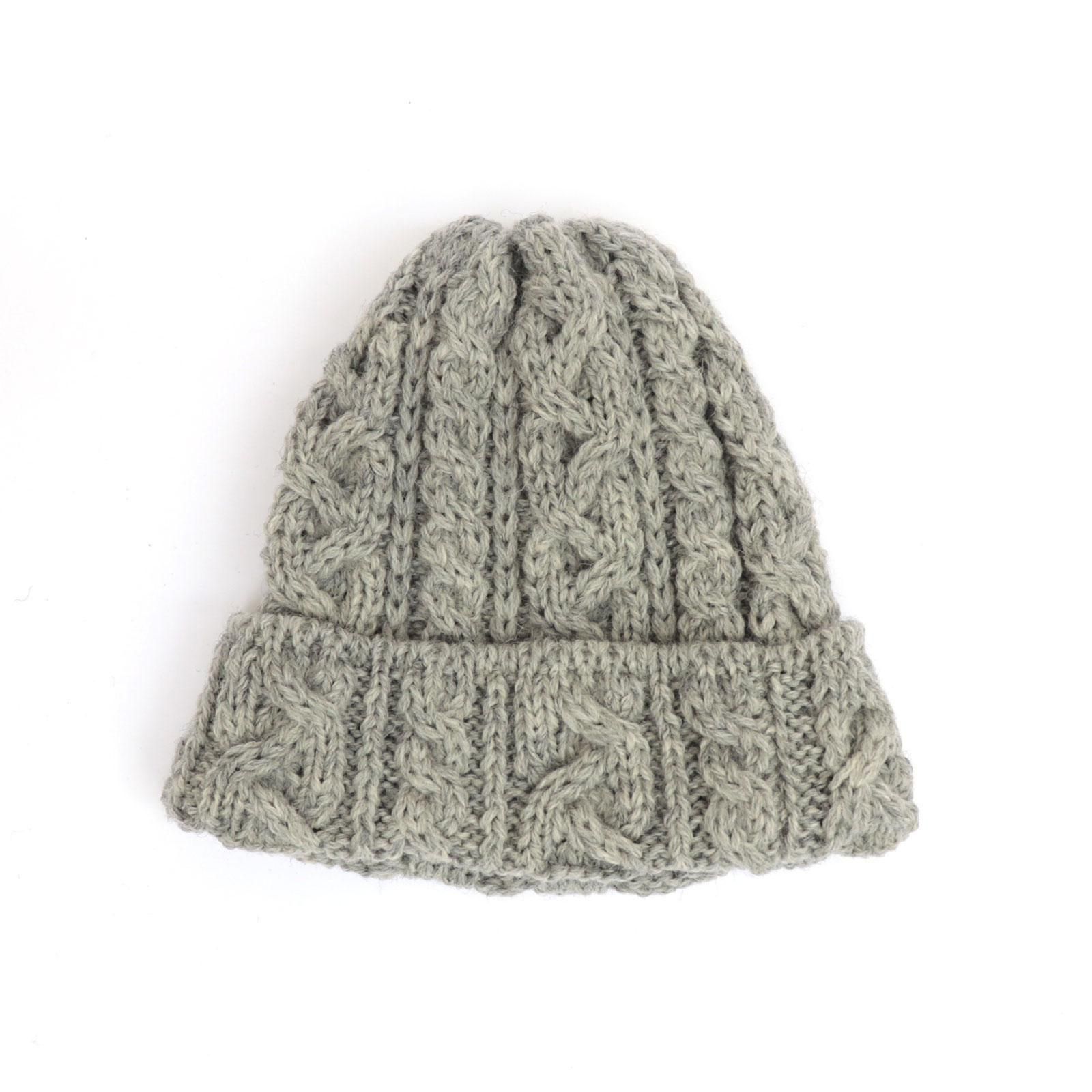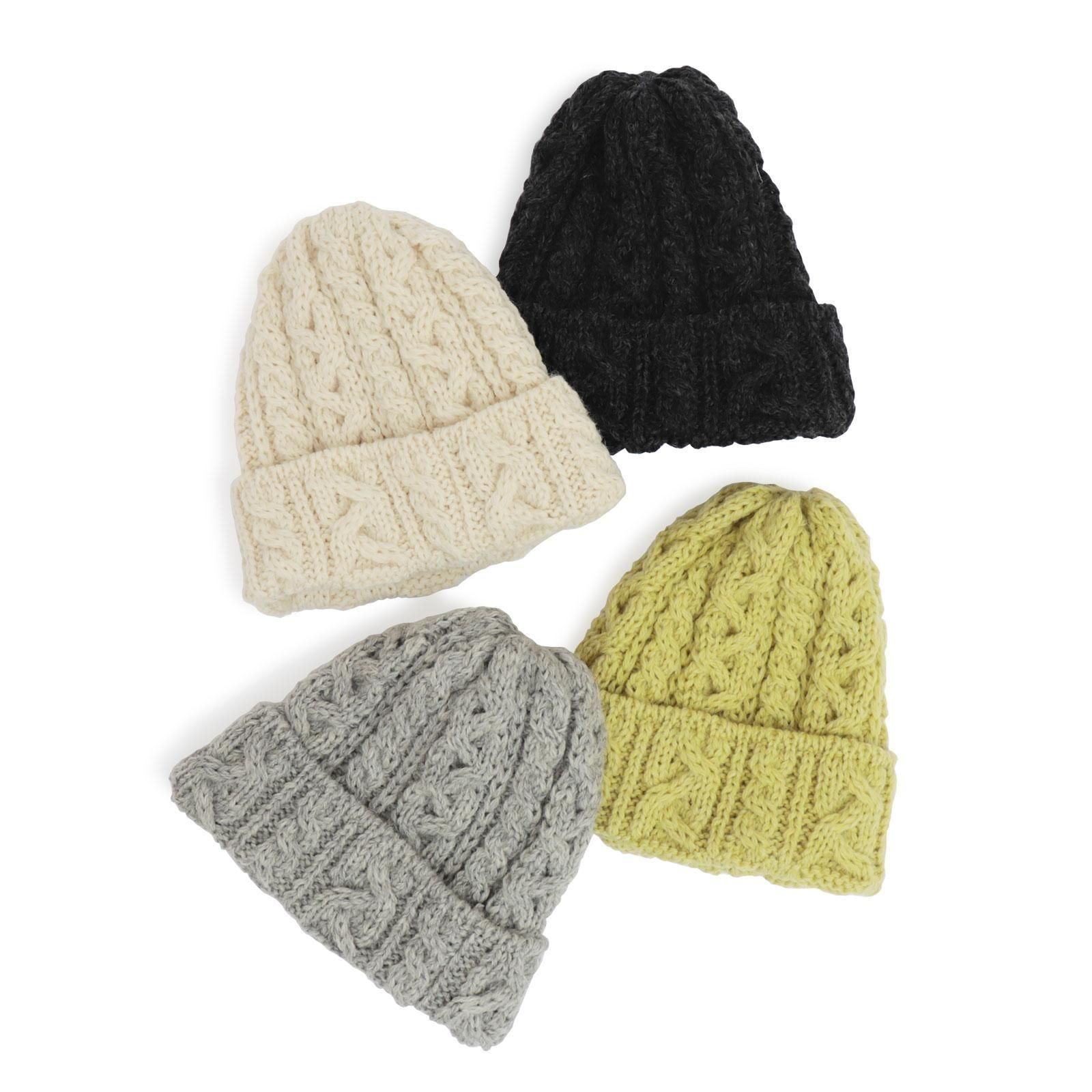 伝統的なケーブル模様の「ケーブル編みニット帽」は柔らかな毛糸で編まれていて優しいかぶり心地のニット帽です。