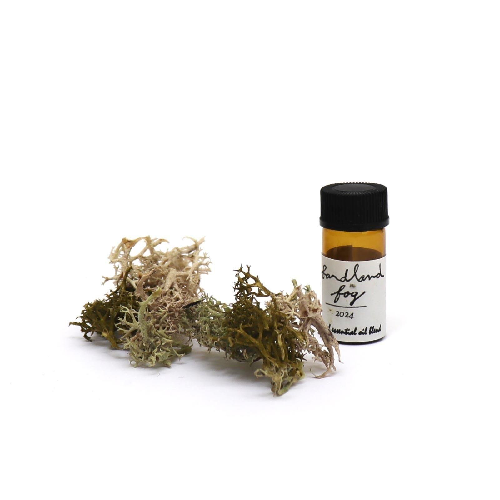 gena kuwanが描く記憶の風景を、エッセンシャルオイル「fog 2024」とディフューザー「egg」で表現し、アイスランドの苔と共に小さな箱に封じ込めました。お手持ちのお皿に、箱の中のアイスランドモスをのせ、その上にディフューザー「egg」をそっと置きエッセンシャルオイルを垂らす。