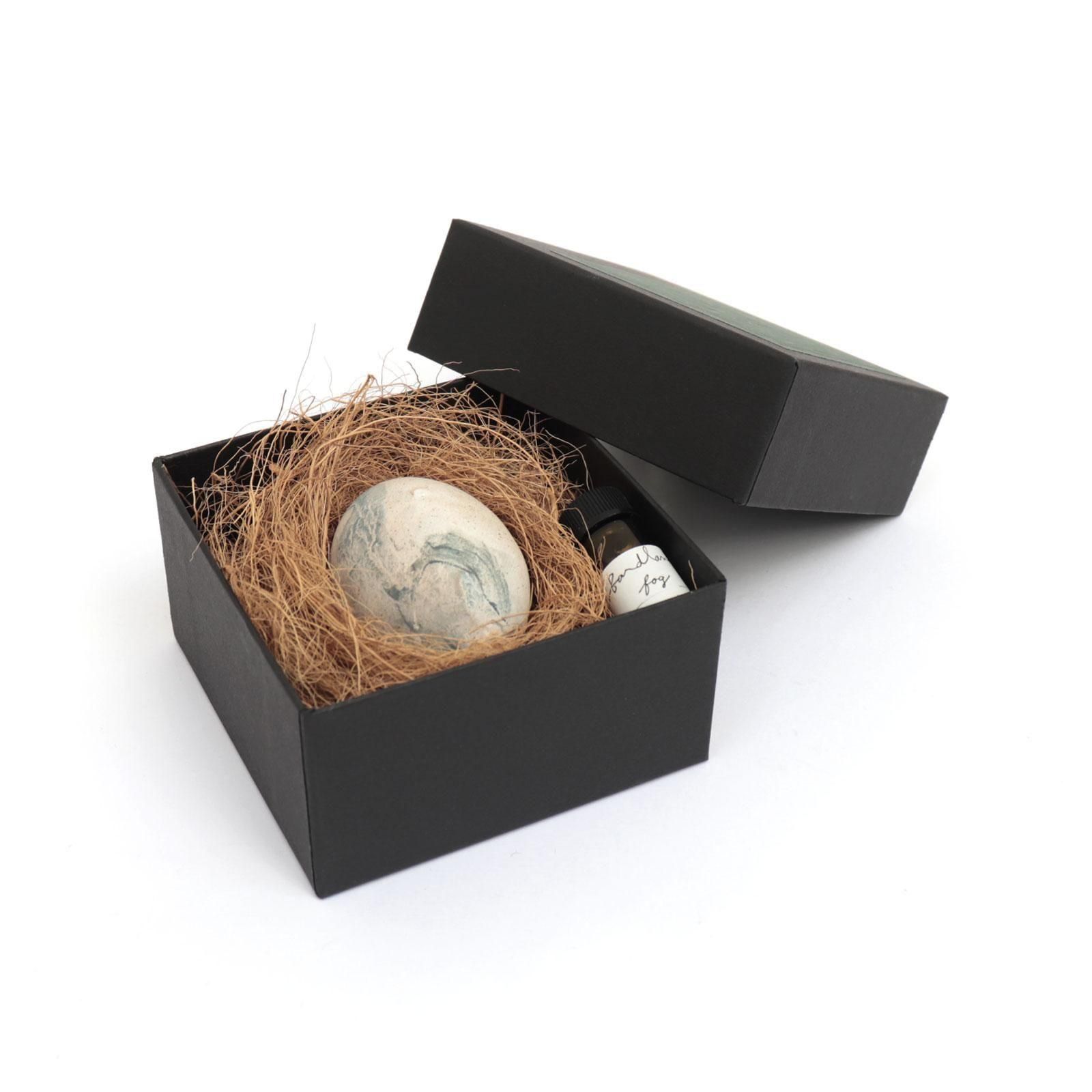 gena kuwanが描く記憶の風景を、エッセンシャルオイル「fog」とディフューザー「egg」で表現し、アイスランドの苔と共に小さな箱に封じ込めました。お手持ちのお皿に、箱の中のアイスランドモスをのせ、その上にディフューザー「egg」をそっと置きエッセンシャルオイルを垂らす。