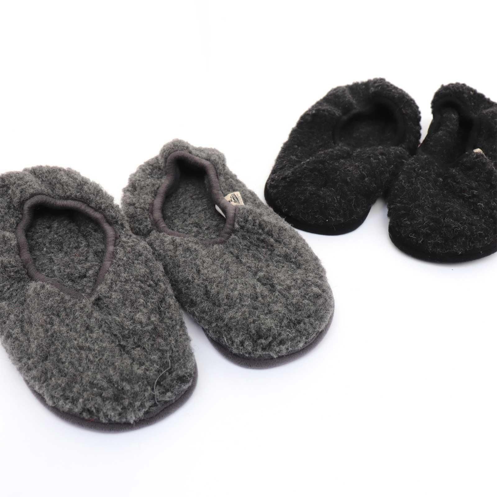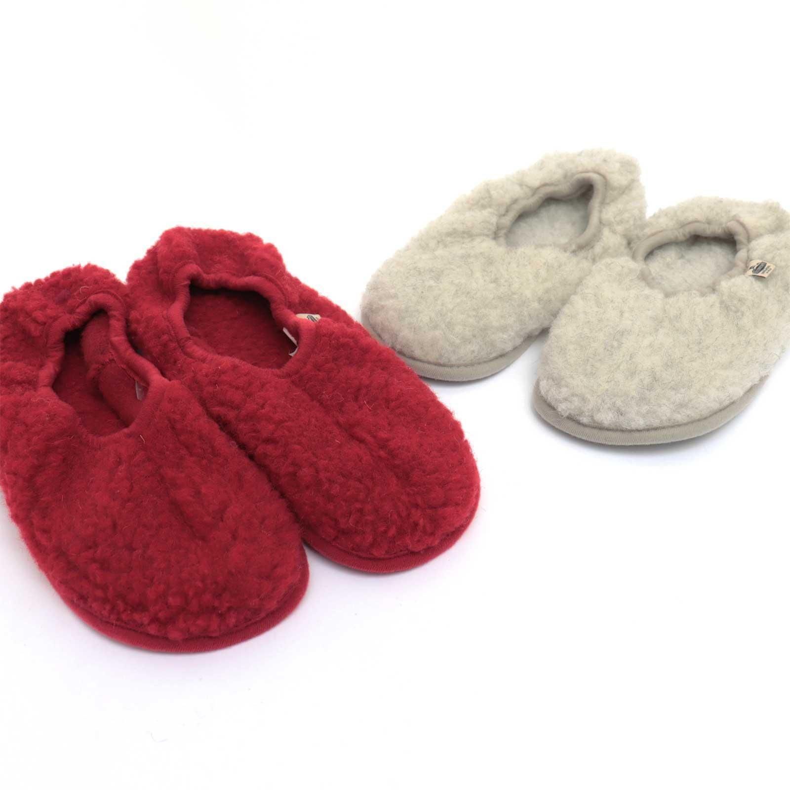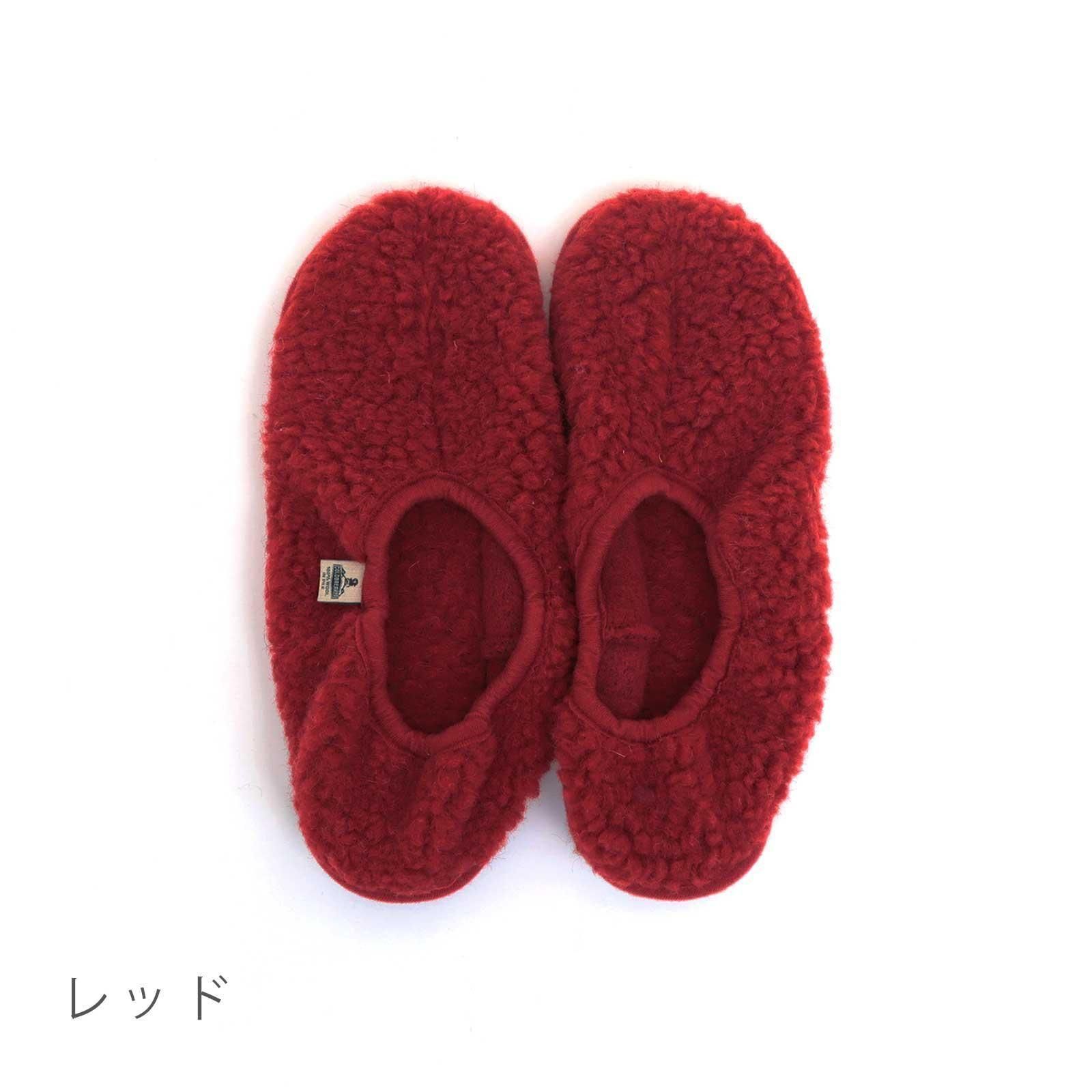 ポーランドのニットファクトリー、コールドブレーカーのルームシューズです。一見化学繊維のフリースに見えますが、実はウール100%。真冬になると零下30度にもなるポーランドで飼育された羊の毛は保湿保温性に優れ、とてもあたたかです。特殊な方法により、ウール独特のチクチクとした肌触りを最小限に抑えるようカットしているので、肌あたりがふんわりとしています。また、履き口がゴムで脱げにくく、底面は滑り止め加工が施されており、フローリングなどのツルツルした床でも滑りにくくて安心です。また底面が柔らかいためしゃがみやすく、作業履きにも向いています。