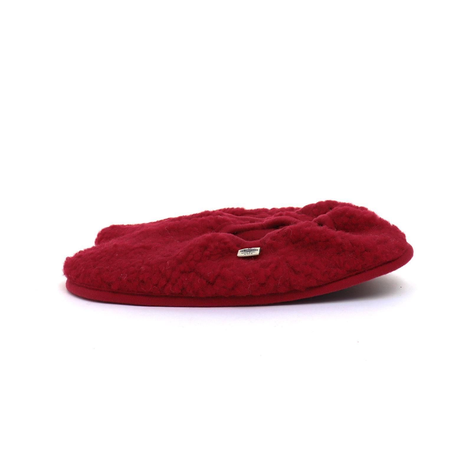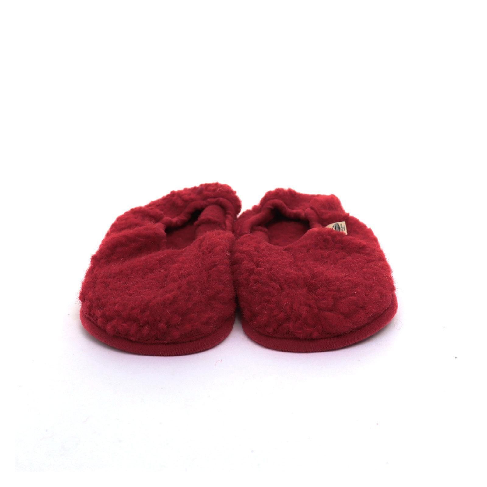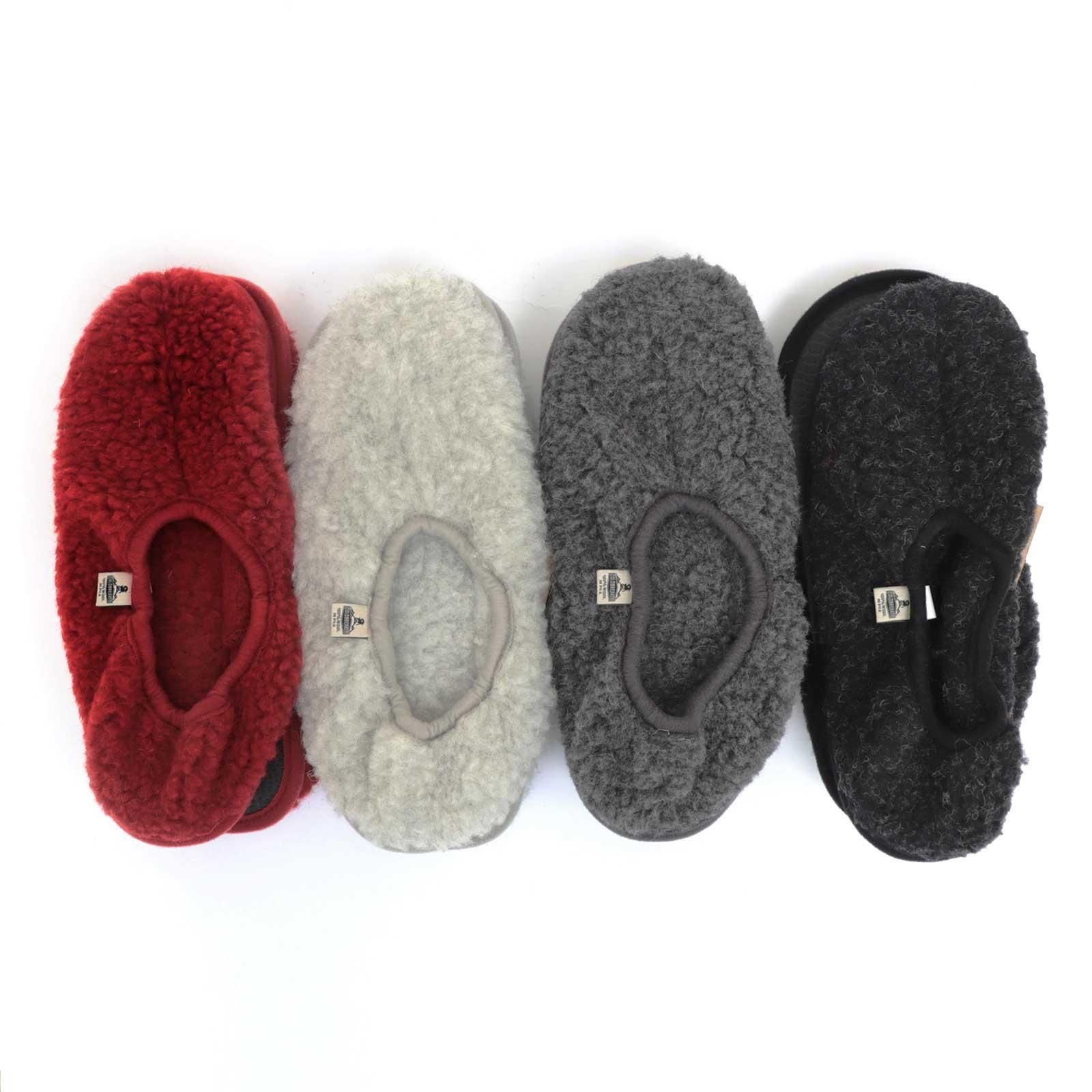 ポーランドのニットファクトリー、コールドブレーカーのルームシューズです。一見化学繊維のフリースに見えますが、実はウール100%。真冬になると零下30度にもなるポーランドで飼育された羊の毛は保湿保温性に優れ、とてもあたたかです。特殊な方法により、ウール独特のチクチクとした肌触りを最小限に抑えるようカットしているので、肌あたりがふんわりとしています。また、履き口がゴムで脱げにくく、底面は滑り止め加工が施されており、フローリングなどのツルツルした床でも滑りにくくて安心です。また底面が柔らかいためしゃがみやすく、作業履きにも向いています。