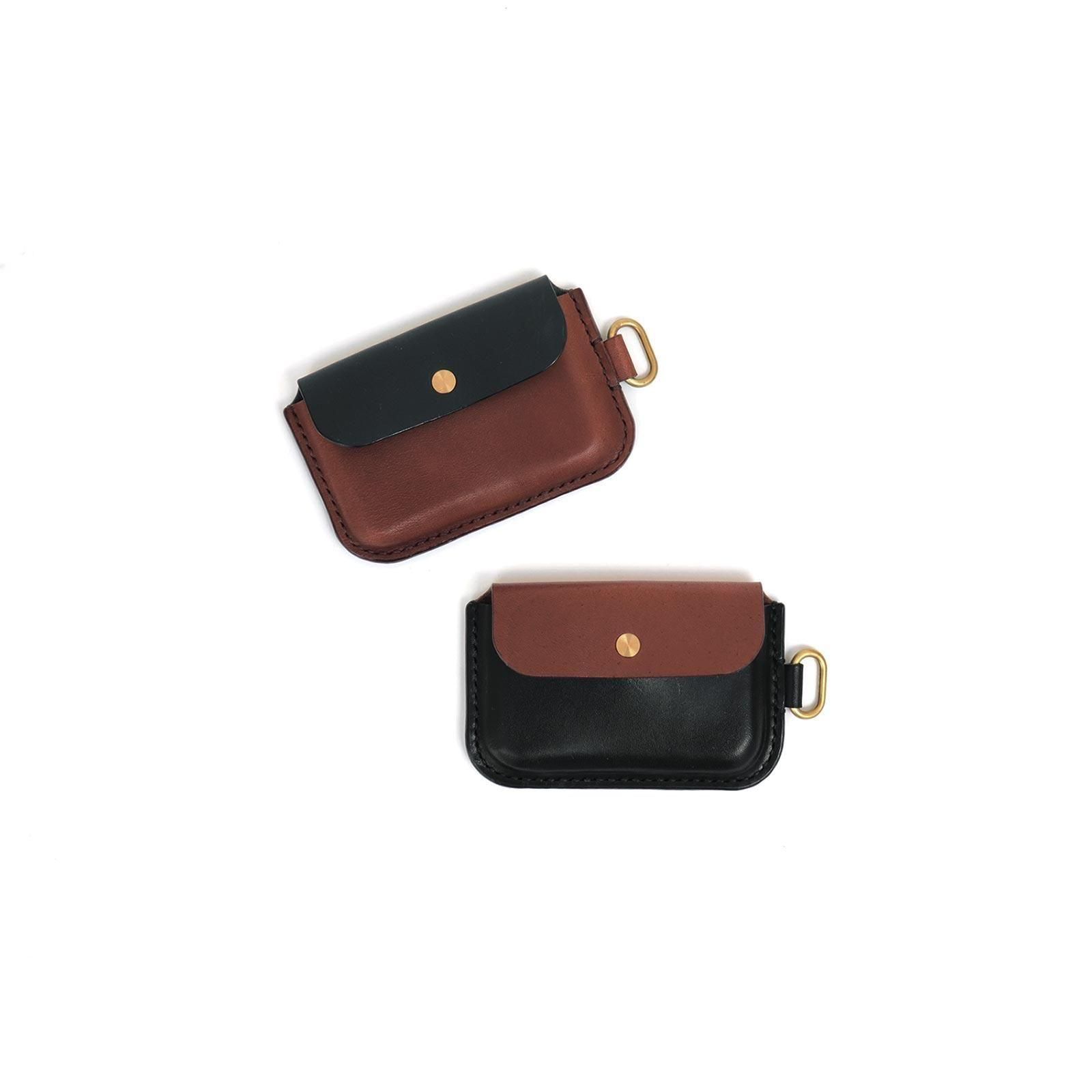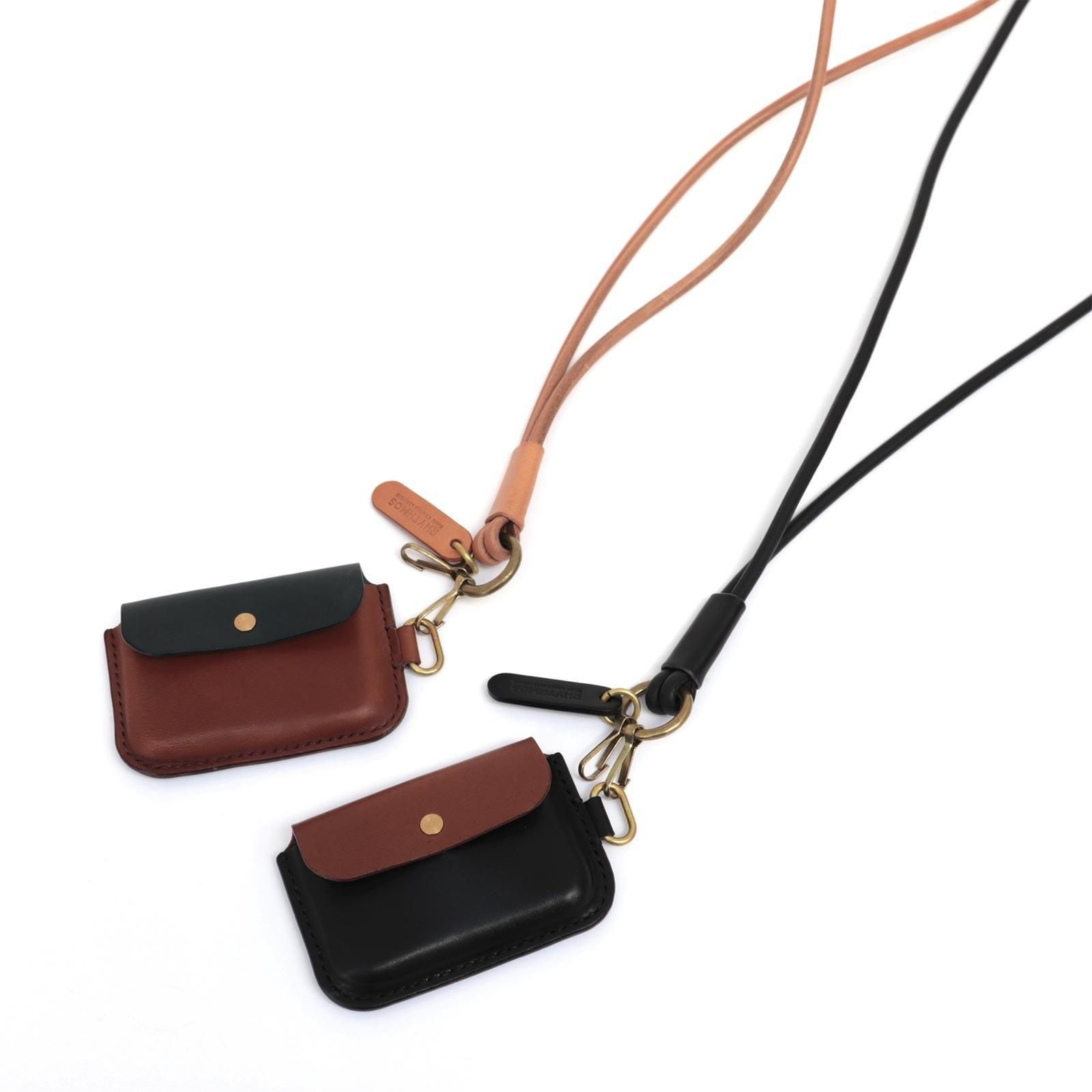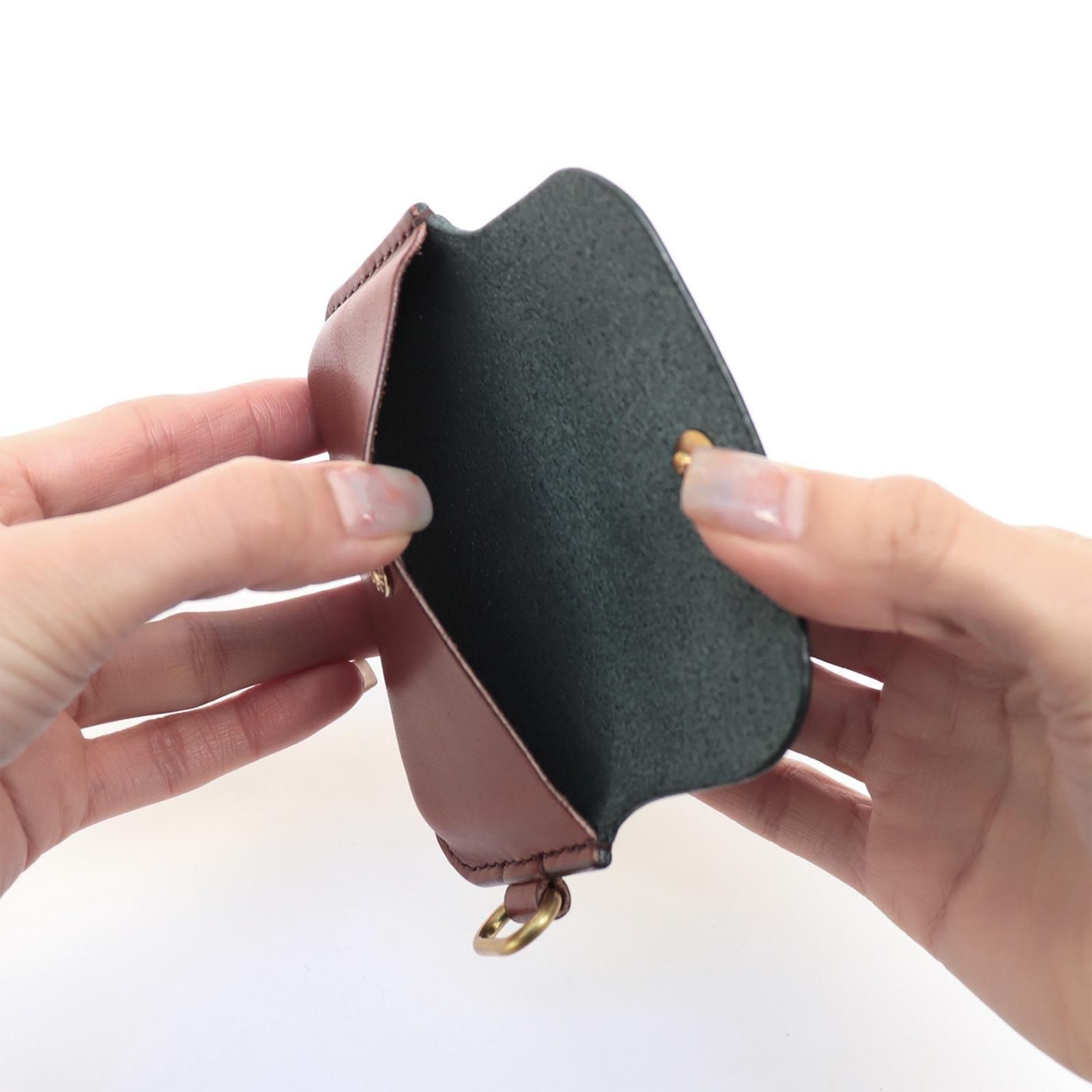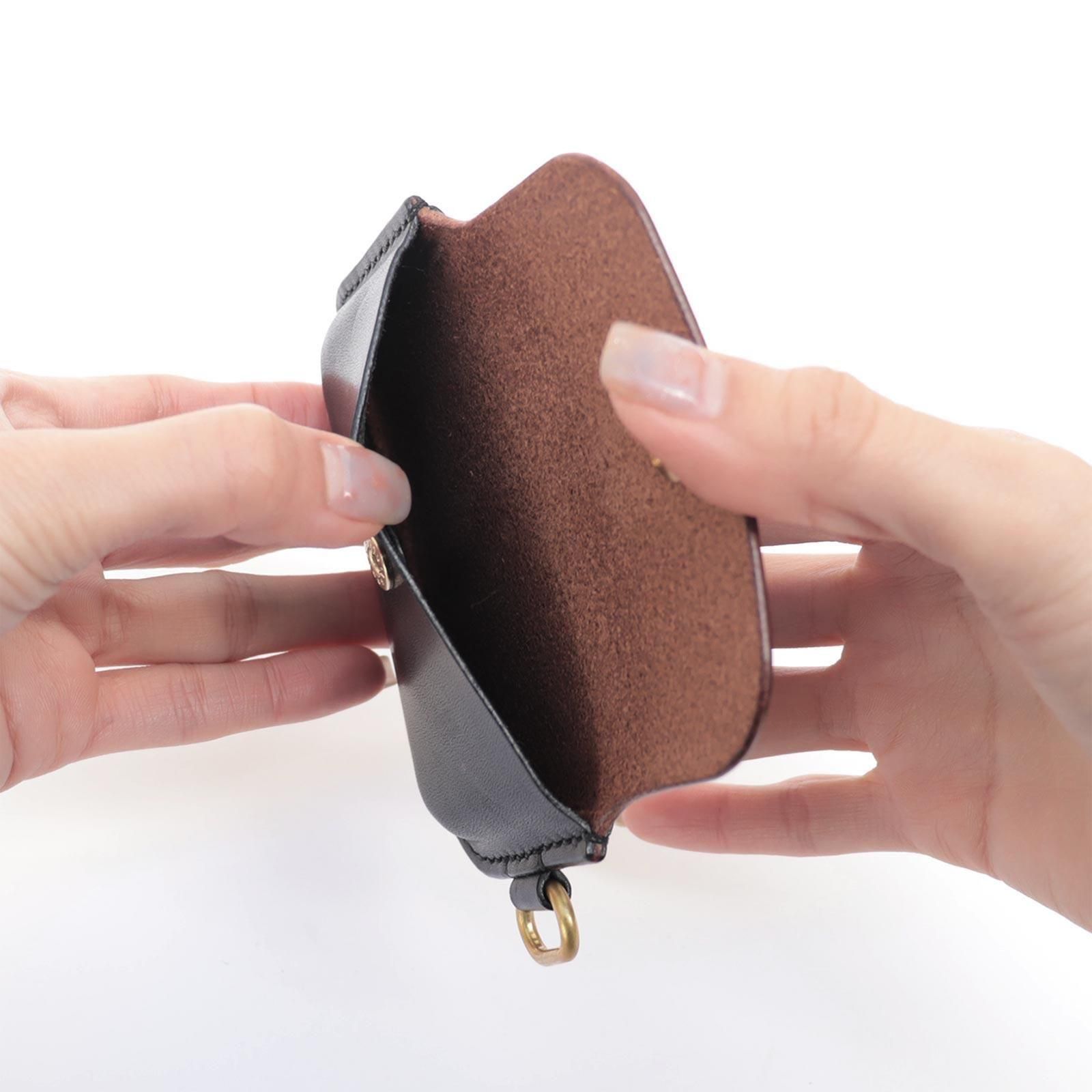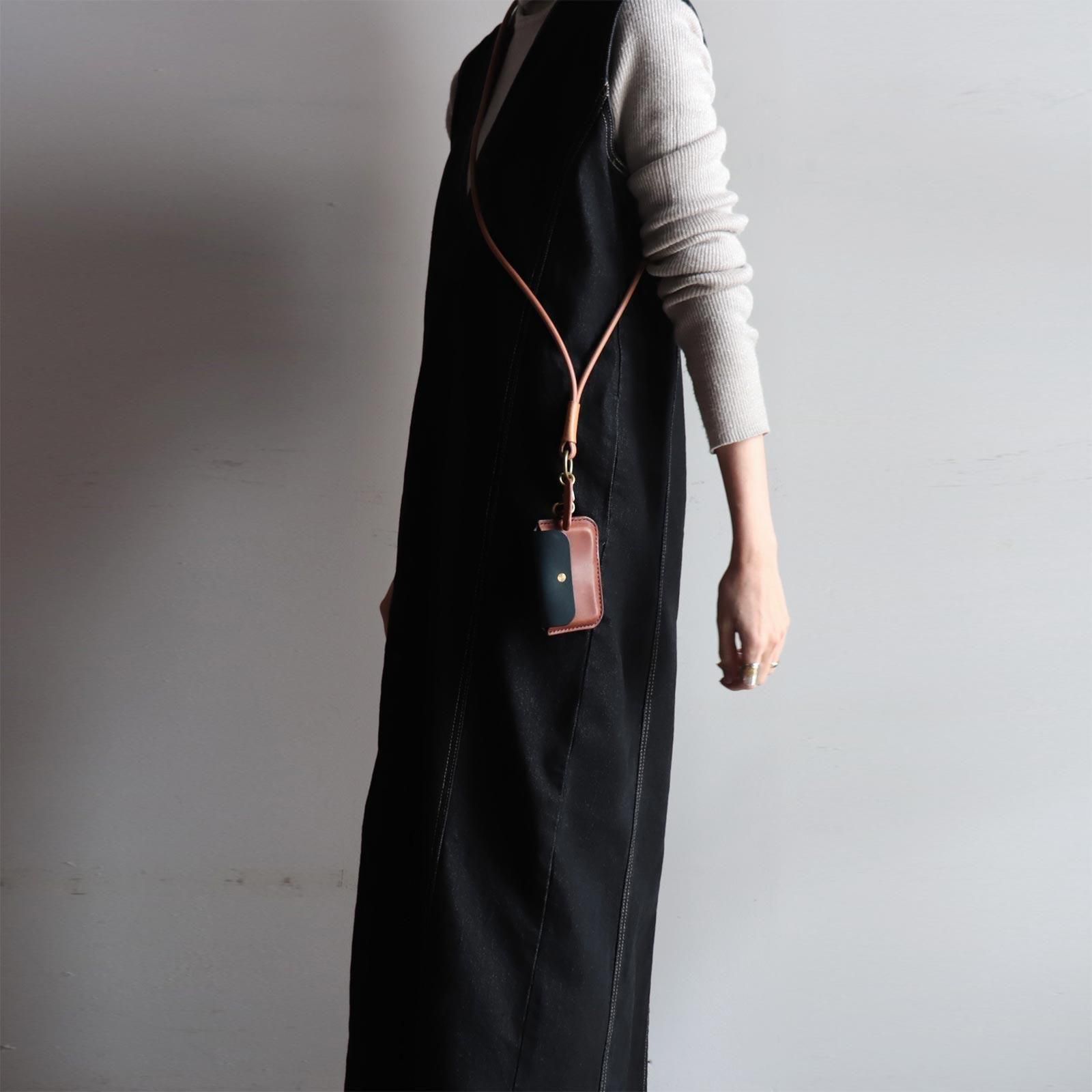 コンパクトなサイズで、最大5枚のカードと折り畳んだお札の収納が可能。ICカードは背面ポケットからタッチ可能で、ストラップに取り付けて使うことも、単体で持ち歩くこともできます。