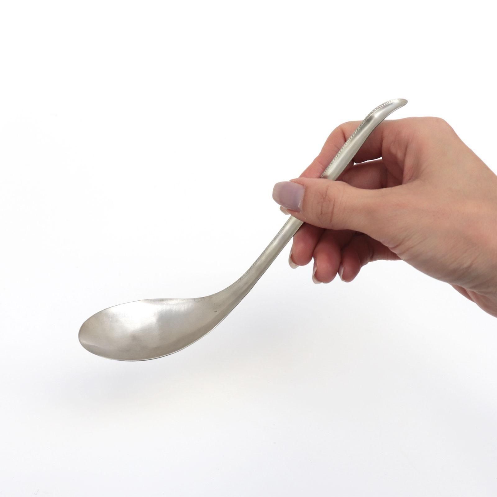 こちらの大きいサイズは、深い鉢にも沈まない柄の長さと角度で、レードルとしてもおすすめです。