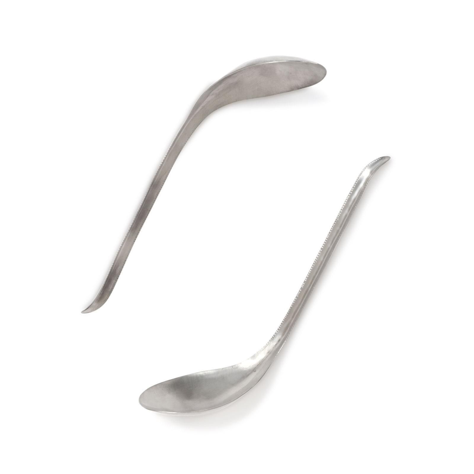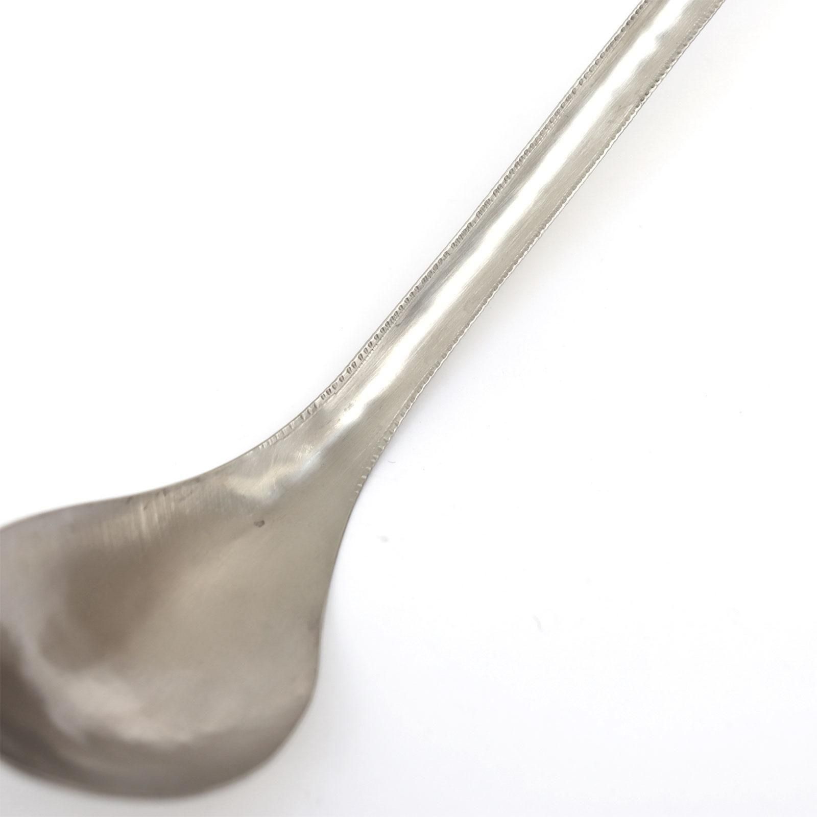 新潟在住の金工作家・大桃沙織さんとの協議で生まれた鍛金のレンゲ。立体的なフォルムが特徴。柄には細かい紋様が刻まれています。銅と亜鉛とニッケルの合金である洋白で作られたレンゲは、金属特有の味もなく、熱いものでもお使いいただきます。